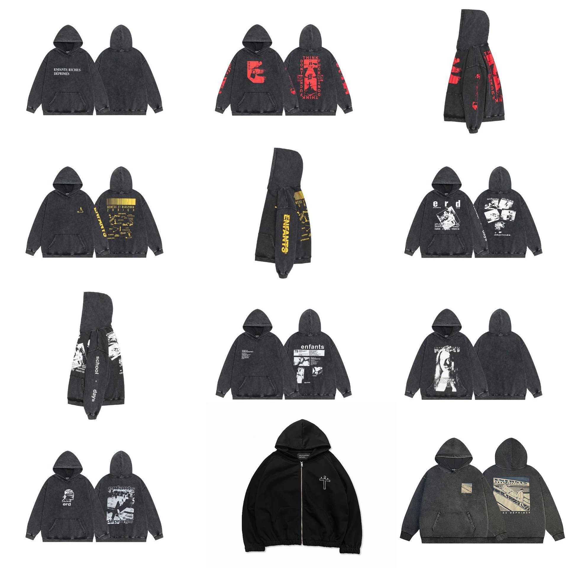 American street retro washed old mud printed letters loose hooded sweatshirt for men and women same style hoodie set